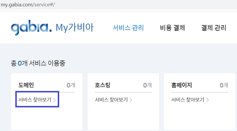 gabia.com -> My가비아 -> 서비스관리 -> 도메인(서비스 찾아보기)에 접속하여준다