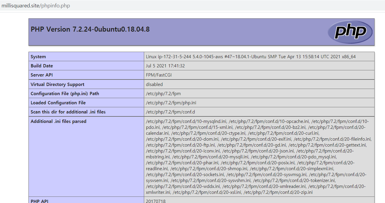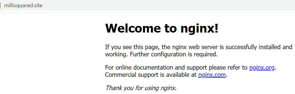 millisquared.site로 IP주소를 입력했을 때와 같은 접속이 성공적으로 이루어졌음을 확인 할 수 있다.