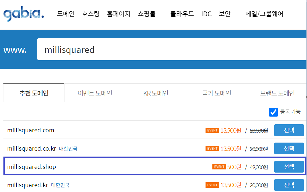 1. gabia 접속 및 Domain 구매