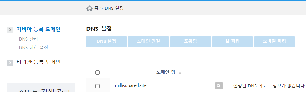 등록한 도메인의 DNS 설정에 들어가준다