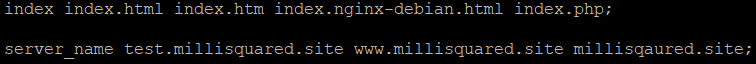 또한 다음과 같이 /etc/nginx/sites-available/default 파일로 이동하여 server_name 또한 추가하여준다.