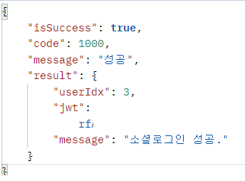 이 때 얻은 acceessToken을 통하여 POSTMAN을 통해 body 값에 입력하여 보내주면 다음과 같은 결과값을 얻을 수 있게 된다!