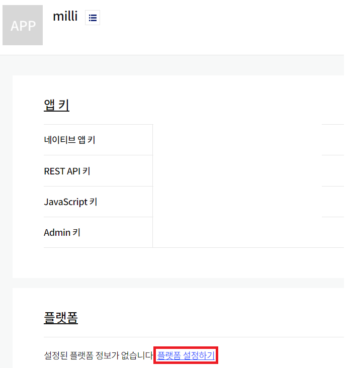 Web 플랫폼을 작성하여준 후, 카카오 로그인 후 Callback을 받을 URI를 Redirect URI에 작성하여준다.