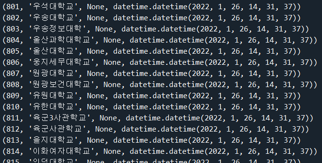 전국 대학교 이름을 크롤링 하여 DB에 저장하기 -2