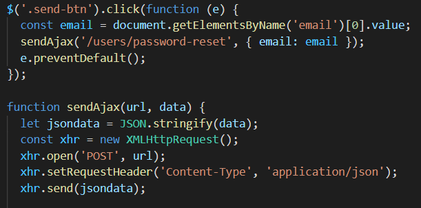 HTML 페이지에서 비밀번호를 재설정 할 Email과 함께 POST 요청