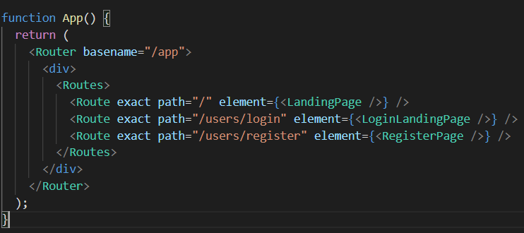 - 경로가 입력되는 Routes 태그 밖에 Router 태그의 basename을 이용해, 모든 주소 앞에 /app이 붙어 접근되도록 한다.