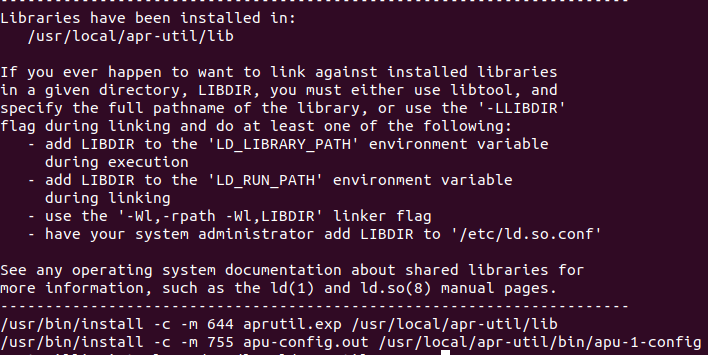 > 그 후 위의 명령어를 통해 APR-util을 설치하여준다.
