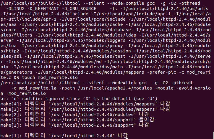 > 그 후 httpd-2.4.46 디렉토리로 돌아가 make 명령어를 실행하여준다.