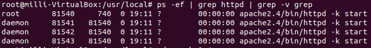 $ /usr/local/# ps -ef | grep httpd | grep -v grep