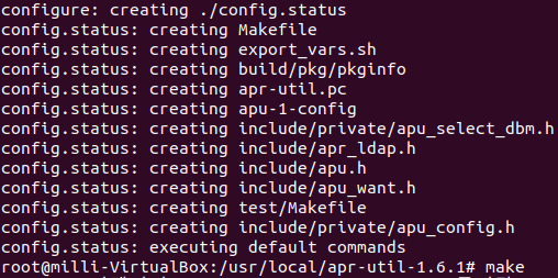 $ /usr/local/apr-util-1.6.1# ./configure --with-apr=/usr/local/apr --prefix=/usr/local/apr-util
