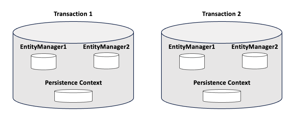 각 EntityManager는 각자 영속성 컨텍스트를 관리함에도 영속성 컨텍스트를 공유할 수 있는데, 하나의 트랜잭션안에 여러개의 EntityManager를 생성하면 트랜잭션 내부의 EntityManager들은 영속성 컨텍스트를 공유하게 된다.