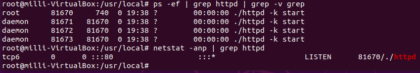 $ /usr/local# ps -ef | grep httpd | grep -v grep